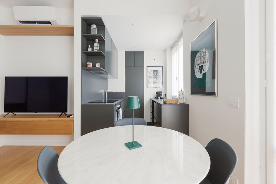 Ristrutturazione chiavi in mano comprensiva di arredamento seguita da QG Real Estate in ottica di gestione dell'appartamento sotto forma di affitto breve, tramite il marchio Smart Rent Solution. L'appartamento è stato interamente rivisto per valorizzare la luminosità degli spazi e la la loro distribuzione, lasciando spazio alla zona giorno. QG si è occupata di tutta la fase di progettazione, cantiere e direzione lavori, oltre a coordinare e dirigere la fase degli ordini di arredamento e i relativi montaggi. Il cantiere, durato complessivamente 4 mesi montaggi inclusi.